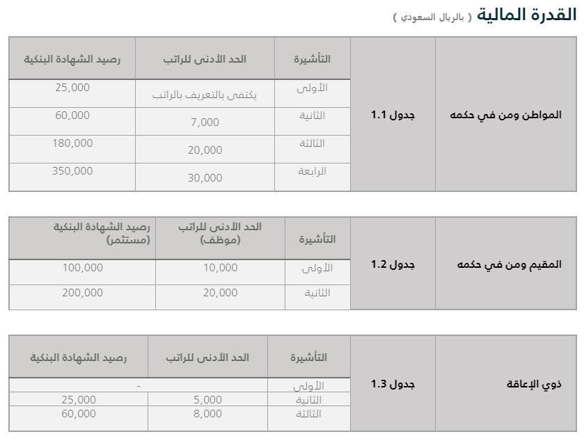 8- يثبت صاحب الطلب من ذوي الإعاقة أو وكيلة المسجل في نظام رعاية القدرة المالية للموظف الحكومي بشهادة تعريف إلكترونية , صادرة من جهة العمل توضح الأجر الشهري وتنتهي صلاحيتها حسب المدة المحددة بشهادة التعريف, على ألا يتجاوز تاريخها ( 180) يوماً من تاريخ تقديم الطلب , مشتركي ومتقاعدي المؤسسة العامة للتأمينات الاجتماعية القدرة المالية بشهادة صادرة من المؤسسة العامة للتأمينات توضح الأجر الشهري , على ألا يتجاوز تاريخها ( 60 ) يوما من تاريخ تقديم الطلب , كما يجوز اثبات القدرة المالية عبر تقديم شهادة بنكية رسمية شخصية توضح الرصيد الحالي , وتنتهي صلاحيتها حسب المدة المحددة لشهادة البنكية على ألا يتجاوز تاريخها (90) يوماً من تاريخ تقديم الطلب.